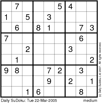 The Daily SuDoku: Tue 22-Mar-2005