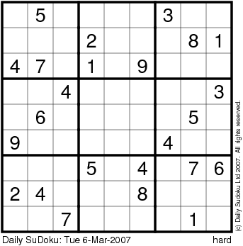 The Daily SuDoku: Tue 6-Mar-2007