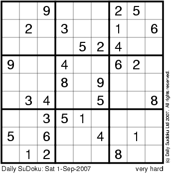 The Daily SuDoku: Sat 1-Sep-2007