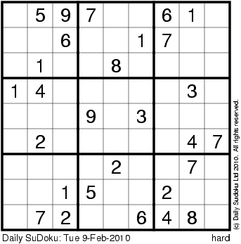 The Daily SuDoku: Tue 9-Feb-2010