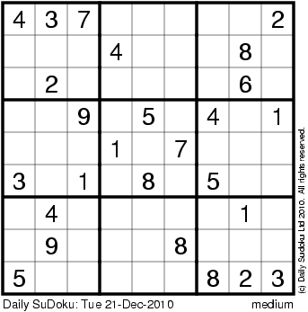 The Daily SuDoku: Tue 21-Dec-2010