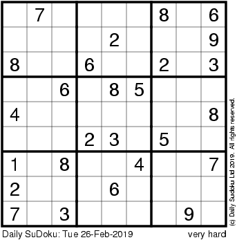 The Daily SuDoku: Tue 26-Feb-2019