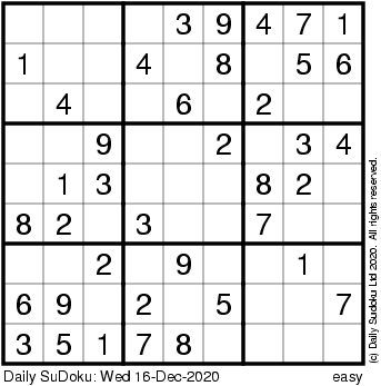 The Daily SuDoku: Wed 16-Dec-2020