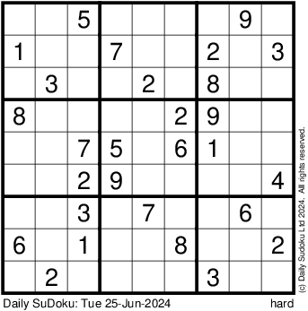 The Daily SuDoku: Tue 25-Jun-2024