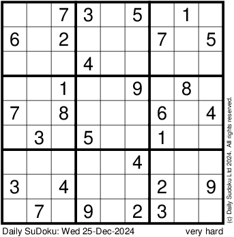 The Daily SuDoku: Wed 25-Dec-2024