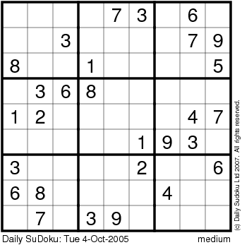 The Daily SuDoku: Tue 4-Oct-2005