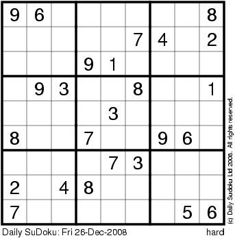 The Daily SuDoku: Fri 26-Dec-2008
