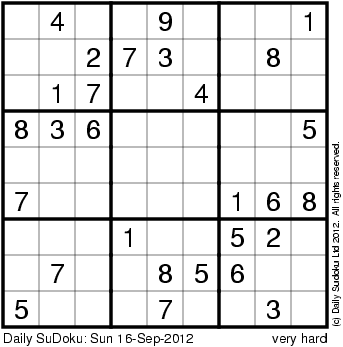 The Daily SuDoku: Sun 16-Sep-2012