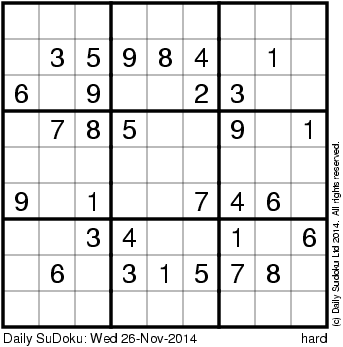 The Daily SuDoku: Wed 26-Nov-2014