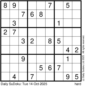 The Daily SuDoku: Tue 14-Oct-2025