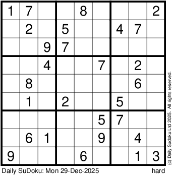 The Daily SuDoku: Mon 29-Dec-2025