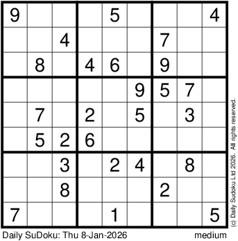 The Daily SuDoku: Thu 8-Jan-2026