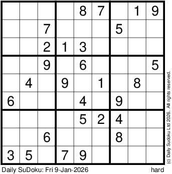 The Daily SuDoku: Fri 9-Jan-2026
