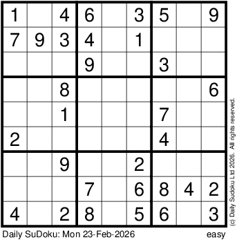 The Daily SuDoku: Mon 23-Feb-2026