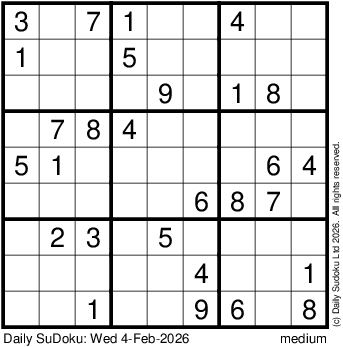 The Daily SuDoku: Wed 4-Feb-2026
