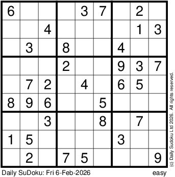 The Daily SuDoku: Fri 6-Feb-2026