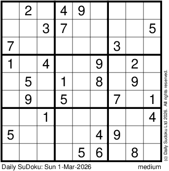 The Daily SuDoku: Sun 1-Mar-2026