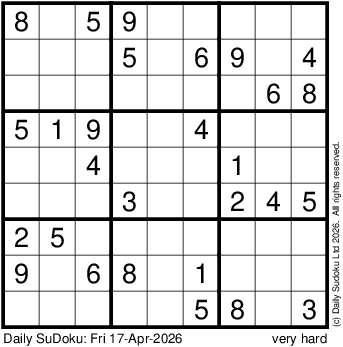 The Daily SuDoku: Fri 17-Apr-2026